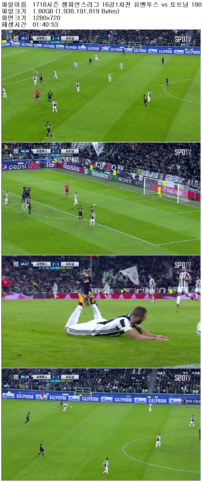 1718시즌 챔피언스리그 16강1차전 유벤투스 vs 토트넘 180214 [국내방송,고화질,720P]