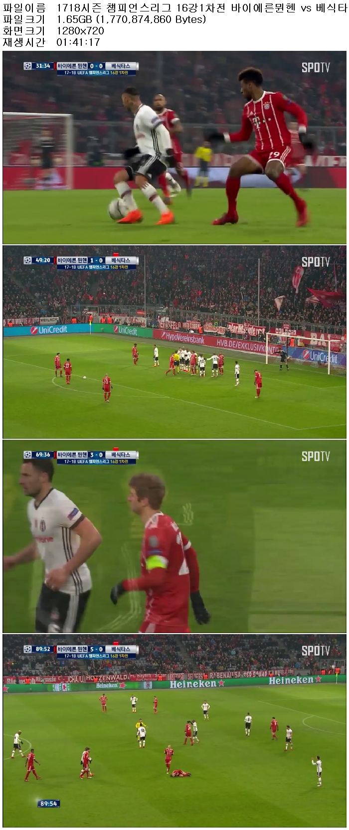 1718시즌 챔피언스리그 16강1차전 바이에른뮌헨 vs 베식타스 180221 [국내방송,고화질,720P]