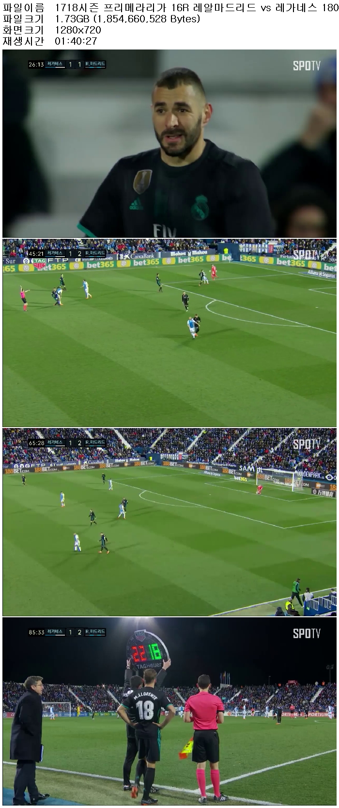 1718시즌 프리메라리가 16R 레알마드리드 vs 레가네스 180222 [국내방송,고화질,720P]