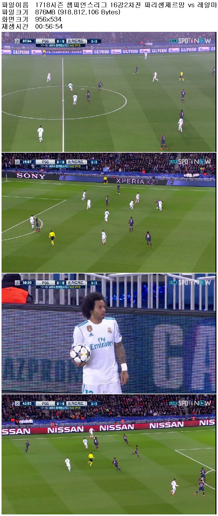 1718시즌 챔피언스리그 16강2차전 파리생제르망 vs 레알마드리드 후반전경기.avi