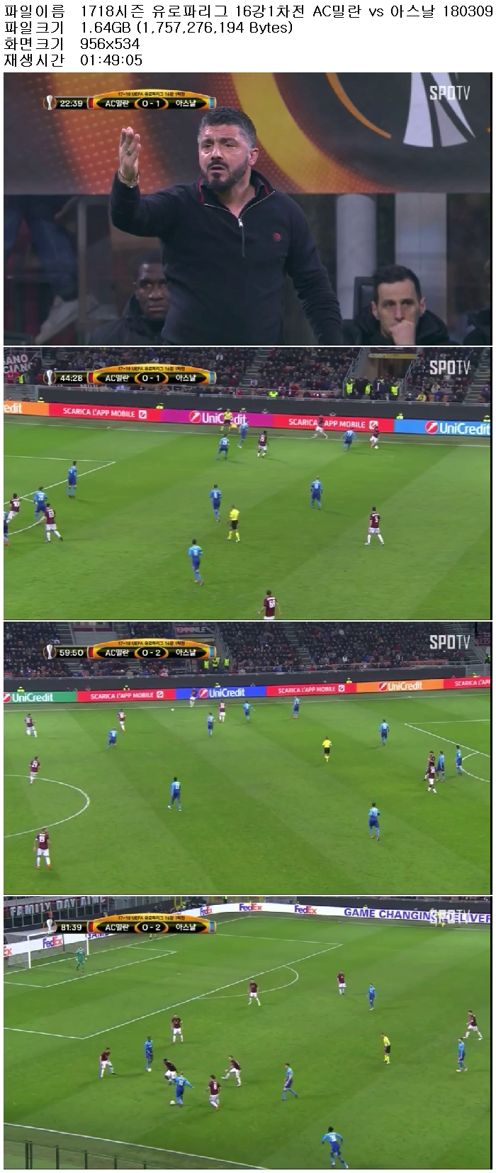 1718시즌 유로파리그 16강1차전 AC밀란 vs 아스날 180309 [국내방송]