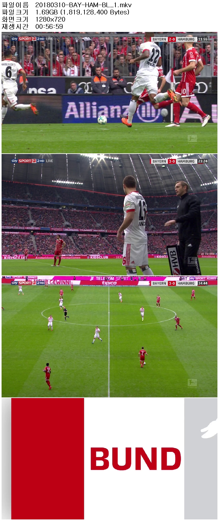 1718시즌 분데스리가 바이에른뮌헨 vs 함부르크 180311[독일어해설,고화질,720P]/