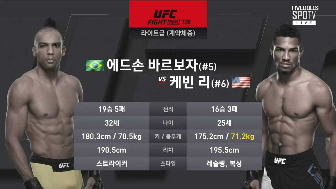 | 06 [국내] [UFC FN 128] 180422 바르보자 VS 케빈리.avi | 706.9 M | AVI | 00:42:32 | 1280x720 |