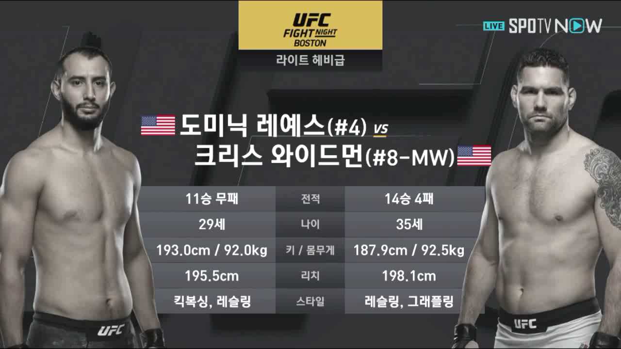 | 6경기 라이트헤비급 레예스 vs 와이드먼.mp4 | 307.9 M | MP4 | 00:18:09 | 1280x720 |