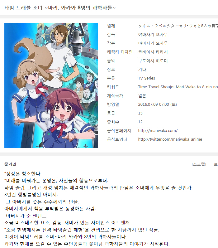 | Time Travel Shoujo - 12(완) ( 1280x720 ).mp4 | 435.1 M | MP4 | 00:25:55 | 1280x720 |