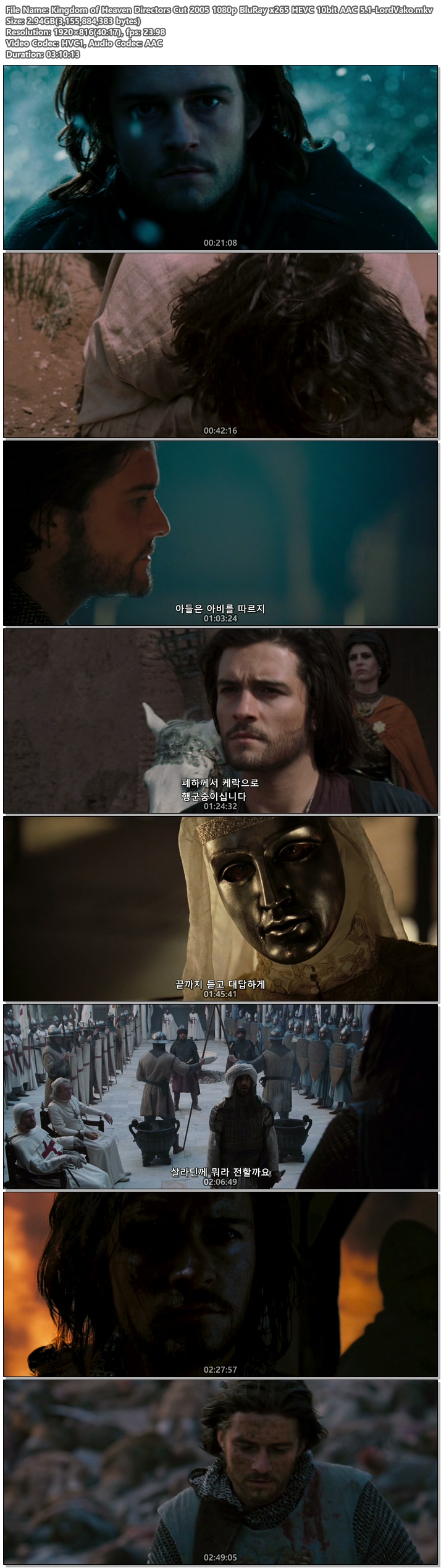 | Kingdom of Heaven Directors Cut 2005 1080p BluRay x265 HEVC 10bit AAC 5.1-LordVako.mkv | 2.9 G | MKV | 03:10:13 | 1920x1080 |