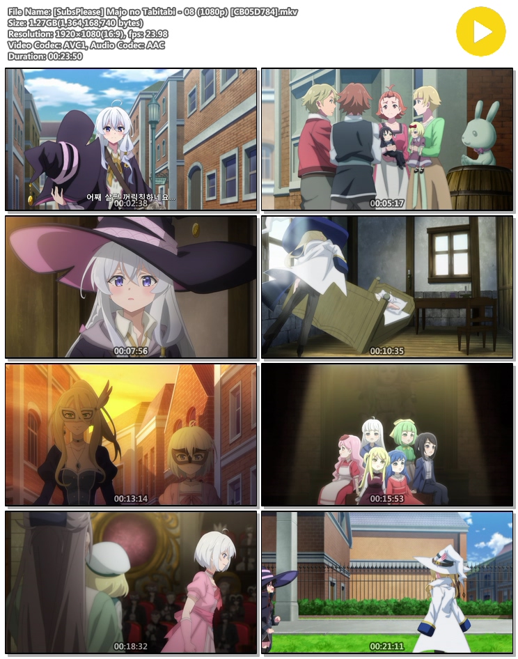 | [SubsPlease] Majo no Tabitabi - 08 (1080p) [CB05D784].mkv | 1.3 G | MKV | 00:23:50 | 1920x1080 |
