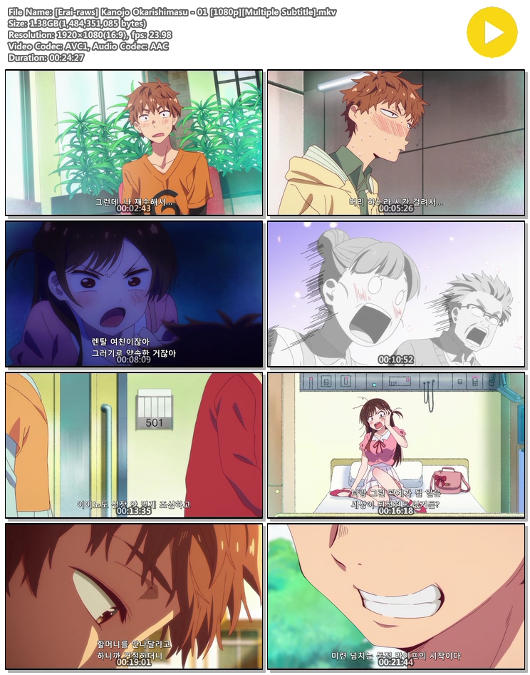 | [Erai-raws] Kanojo Okarishimasu - 01 [1080p][Multiple Subtitle].mkv | 1.4 G | MKV | 00:24:27 | 1920x1080 |