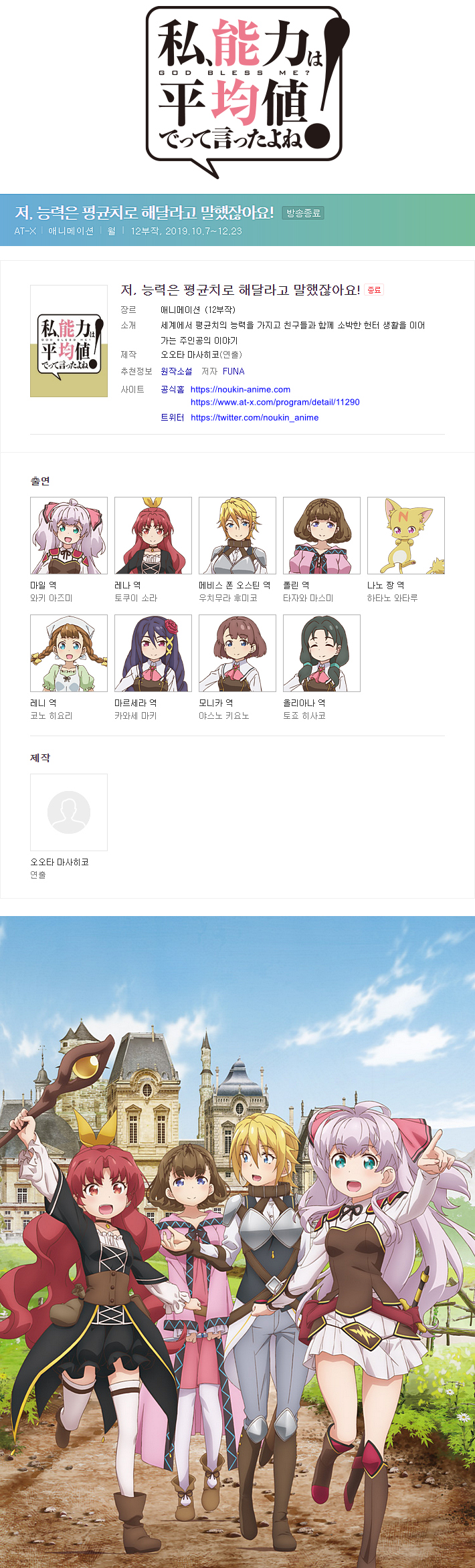 저, 능력은 평균치로 해달라고 말했잖아요!(Watashi, Nouryoku wa Heikinchi dette Itta yo ne!).2019 01~12.완결 (BD 1920x1080 x265-10Bit Flac).고화질.한글자막