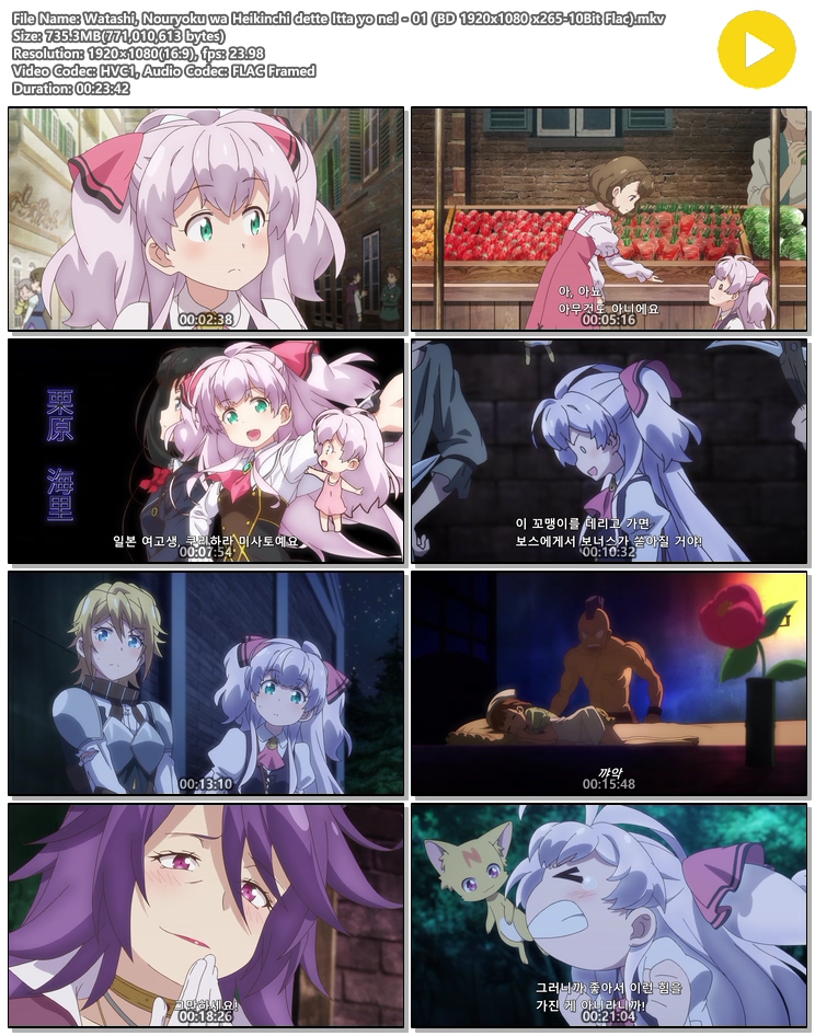 | Watashi, Nouryoku wa Heikinchi dette Itta yo ne! - 01 (BD 1920x1080 x265-10Bit Flac).mkv | 735.3 M | MKV | 00:23:42 | 1920x1080 |