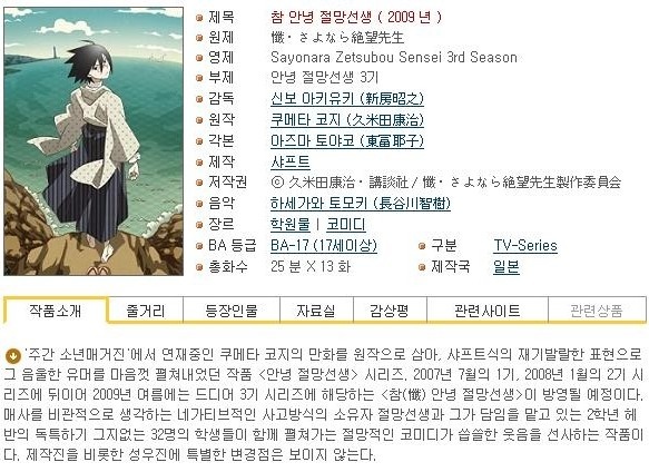 | 참 안녕 절망선생 13화(完).avi | 249.3 M | AVI | - | - |