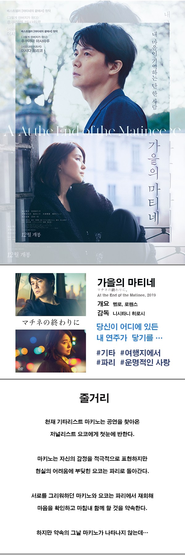 드디어 한국에 개봉 [ 가을의 마티네 ] 정통 일본멜로