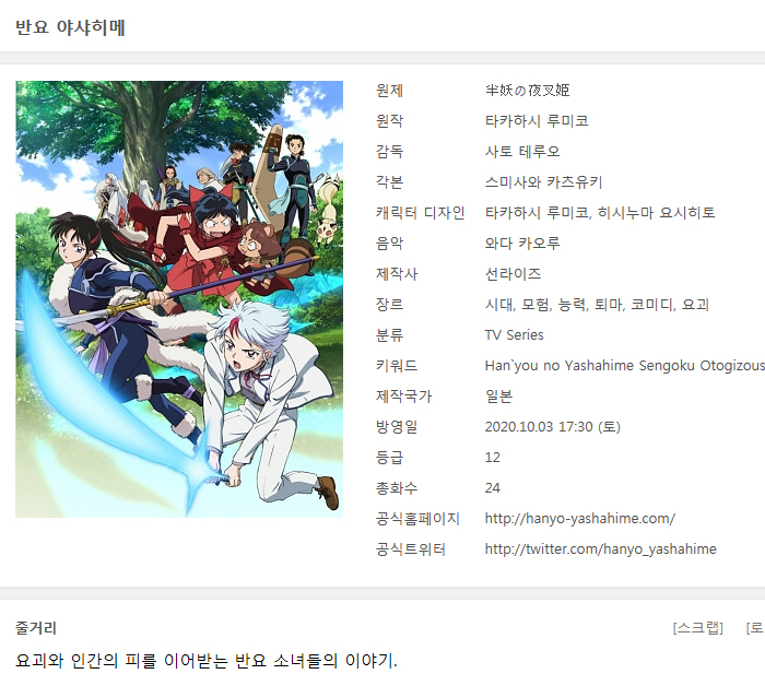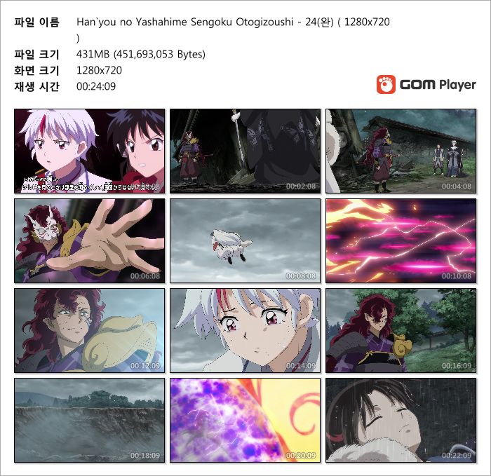 | Han`you no Yashahime Sengoku Otogizoushi - 24(완) ( 1280x720 ).mp4 | 430.8 M | MP4 | 00:24:09 | 1280x720 |