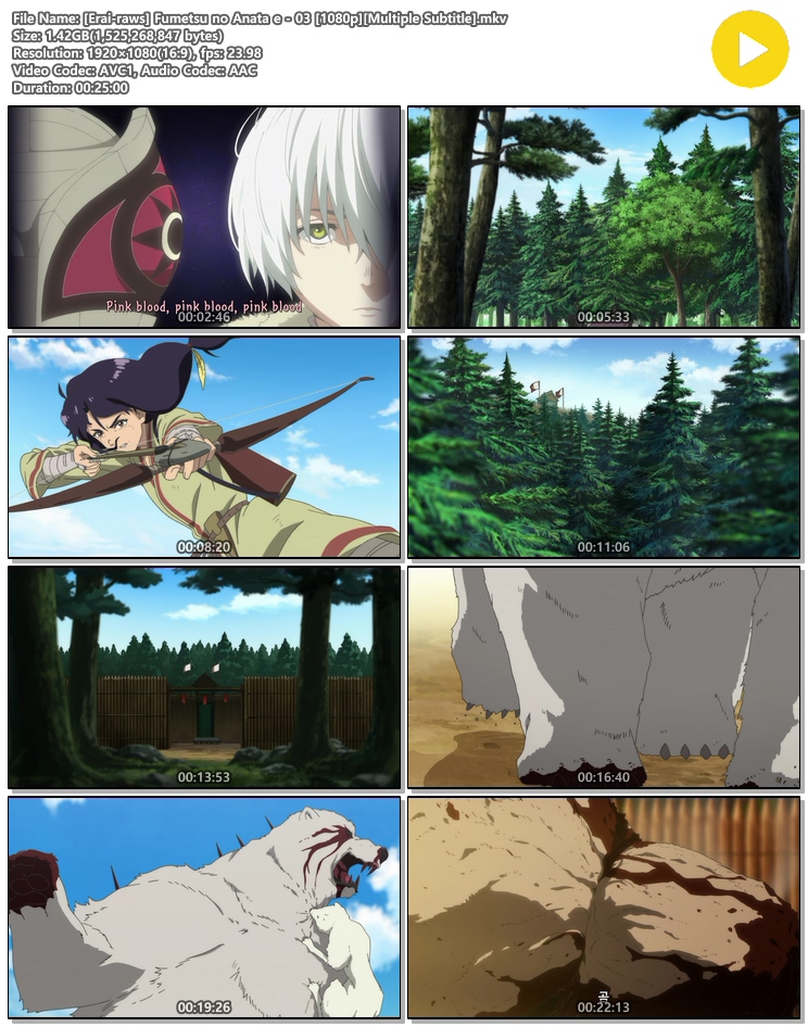 | [Erai-raws] Fumetsu no Anata e - 03 [1080p][Multiple Subtitle].mkv | 1.4 G | MKV | 00:25:00 | 1920x1080 |