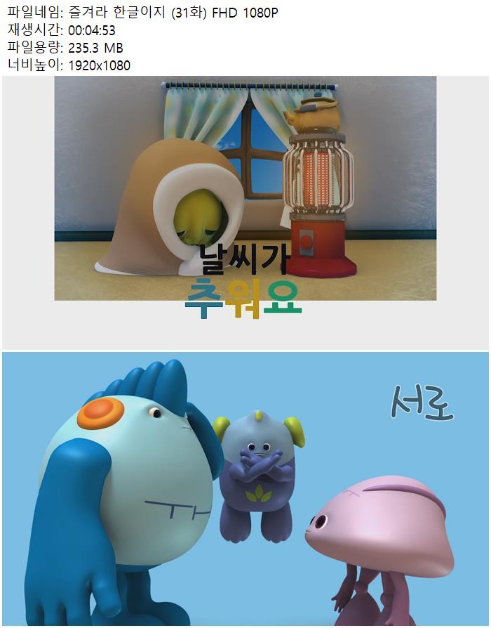 즐겨라 한글이지 (31화) FHD 1080P.mp4 235.3 M MP4 00:04:53 1920x1080