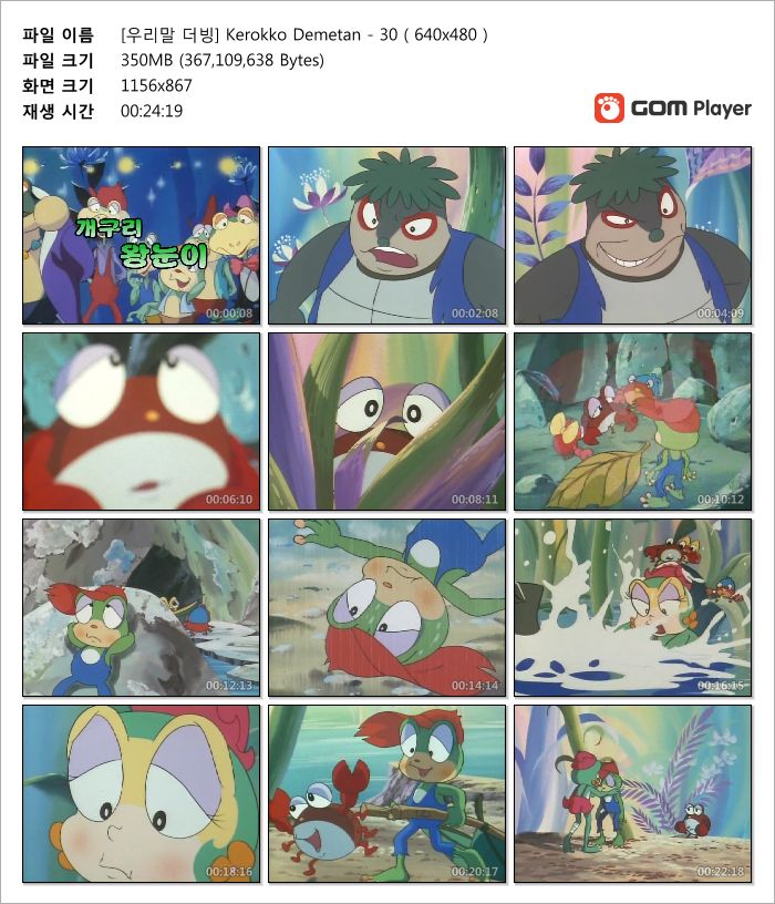 | [우리말 더빙] Kerokko Demetan - 19 ( 640x480 ).avi | 350.1 M | AVI | 00:24:13 | 640x480 |
