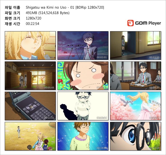 | Shigatsu wa Kimi no Uso - 22(완) [BDRip 1280x720].mp4 | 462.8 M | MP4 | 00:22:52 | 1280x720 |