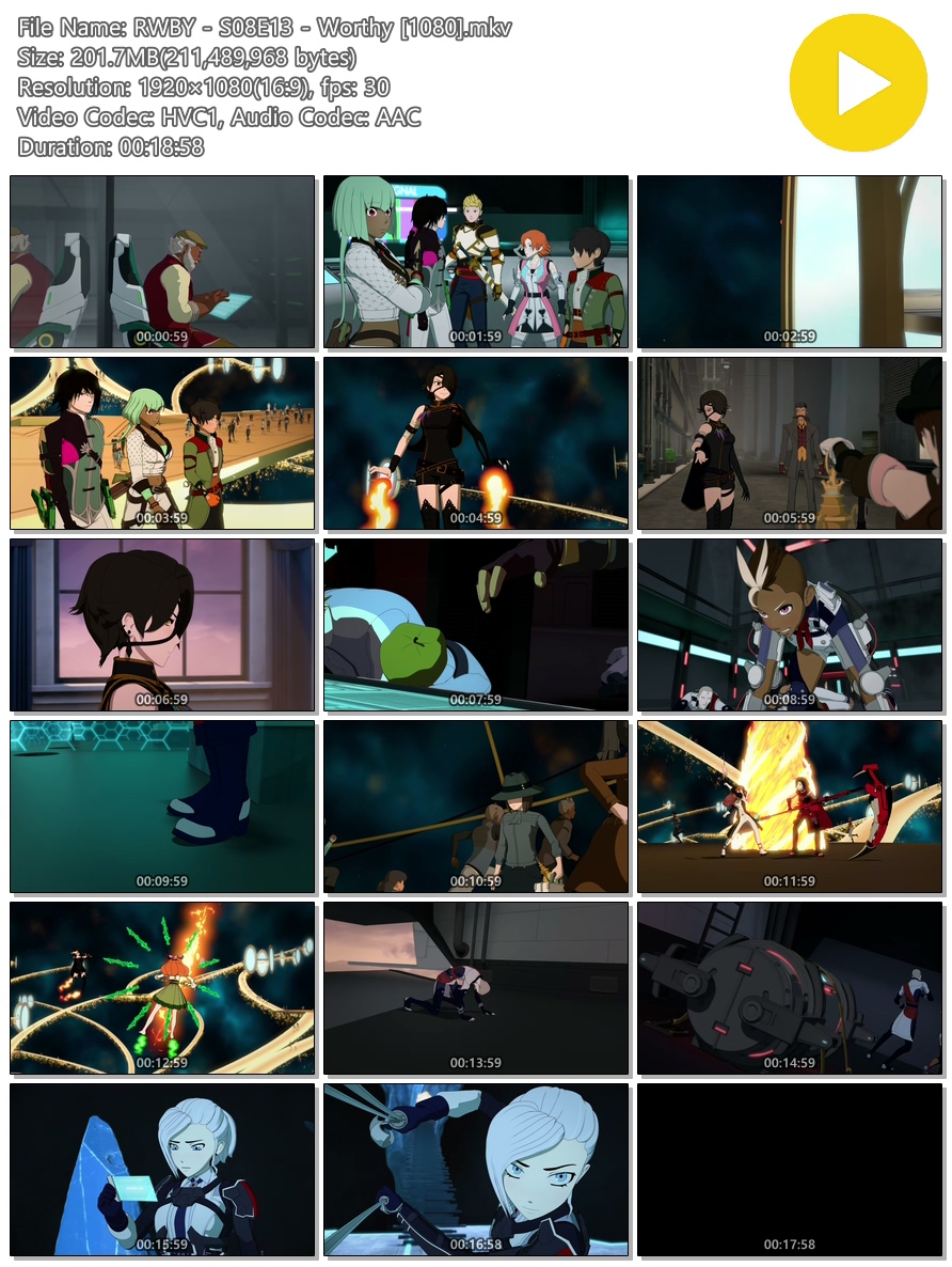 | RWBY - S08E13 - Worthy [1080].mkv | 201.7 M | MKV | 00:18:58 | 1920x1080 |