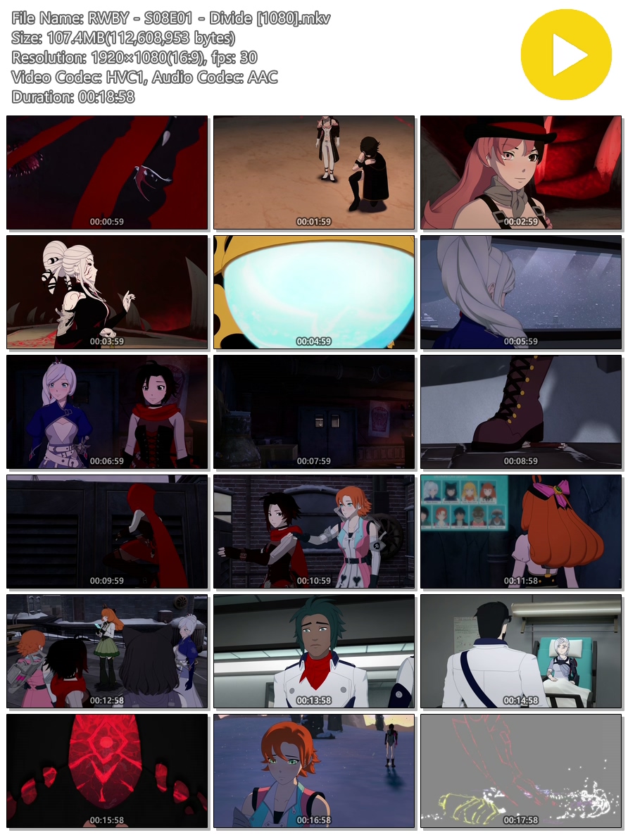 | RWBY - S08E01 - Divide [1080].mkv | 107.4 M | MKV | 00:18:58 | 1920x1080 |