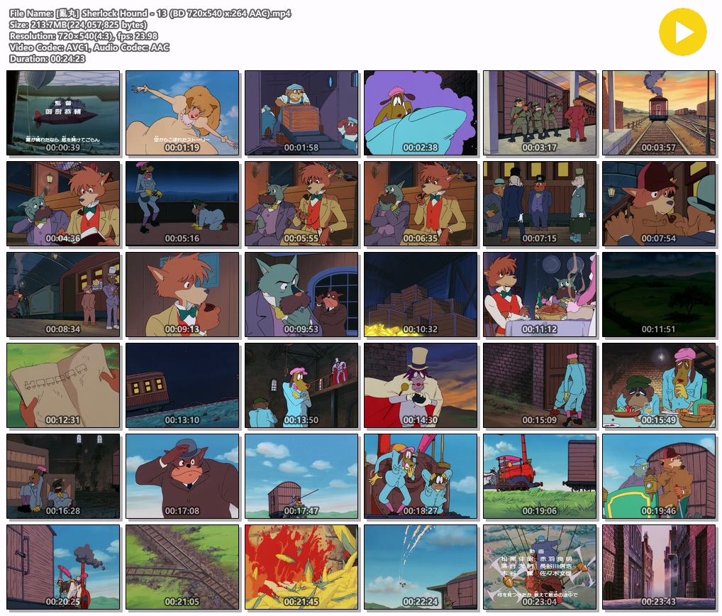 | [亂丸] Sherlock Hound - 13 (BD 720x540 x.264 AAC).mp4 | 213.7 M | MP4 | 00:24:23 | 720x540 |