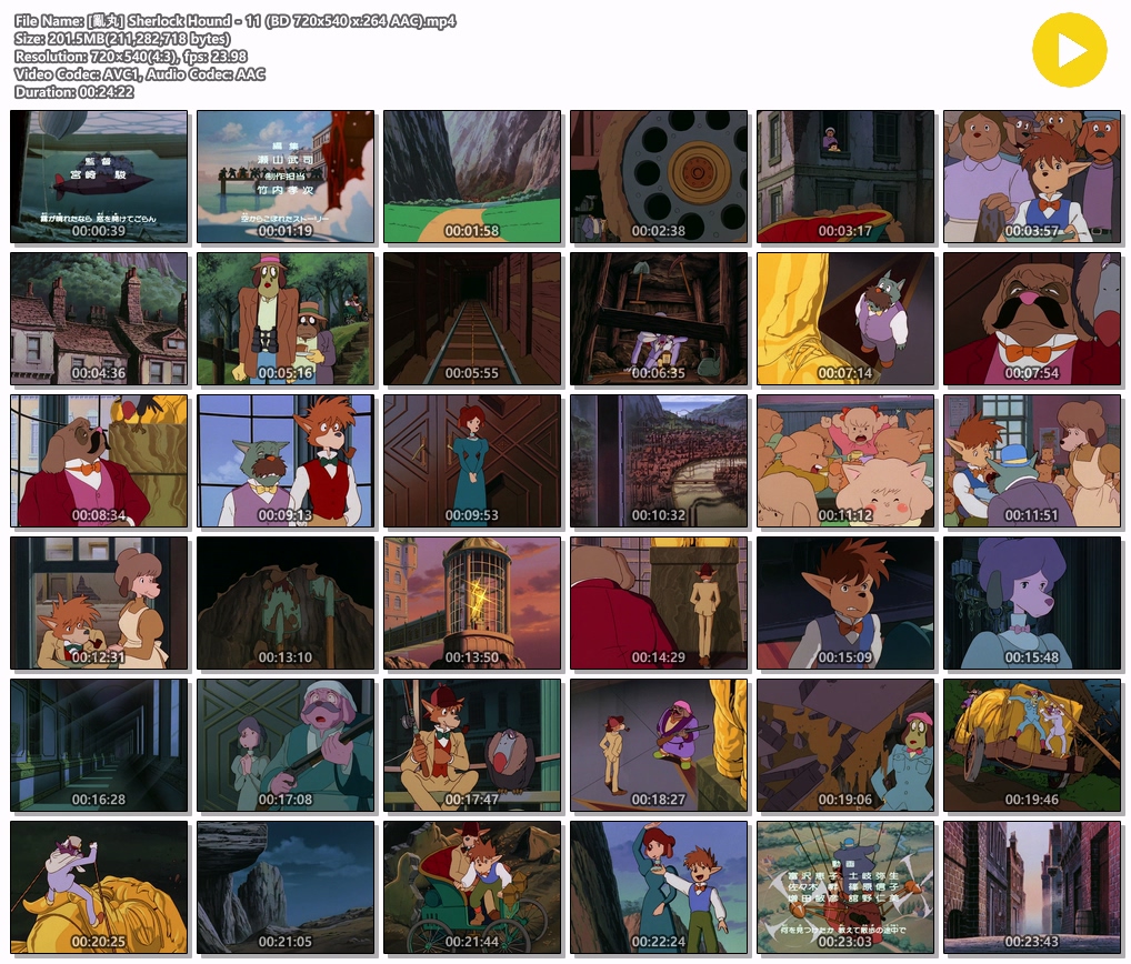 | [亂丸] Sherlock Hound - 11 (BD 720x540 x.264 AAC).mp4 | 201.5 M | MP4 | 00:24:22 | 720x540 |