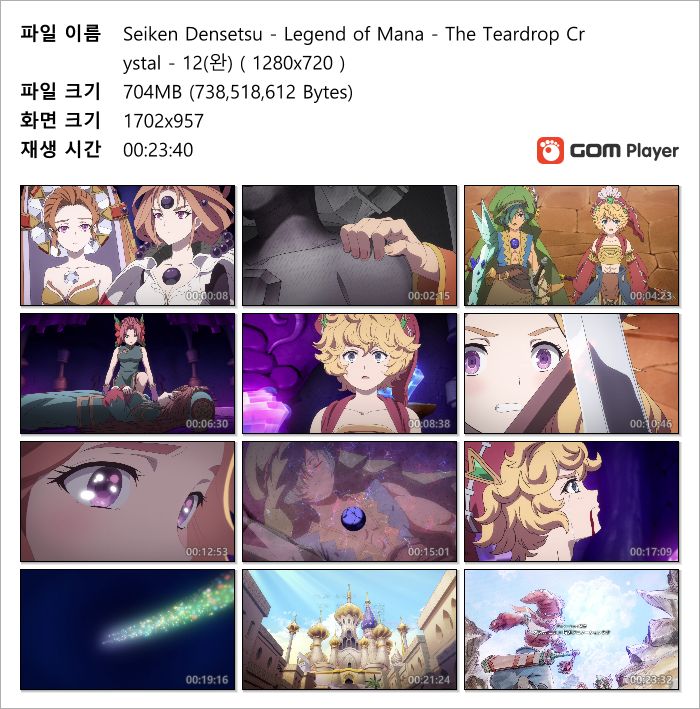 | Seiken Densetsu - Legend of Mana - The Teardrop Crystal - 12(완) ( 1280x720 ).mkv | 704.3 M | MKV | 00:23:40 | 1280x720 |
