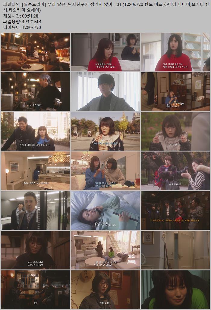 | [일본드라마] 우리 딸은, 남자친구가 생기지 않아! - 01 (1280x720.칸노 미호,하마베 미나미,오카다 켄시,카와카미 요헤이).mkv |