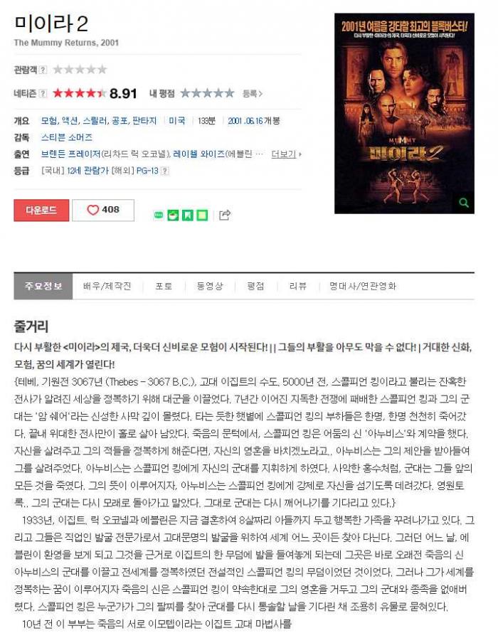 [ 미이라 2 ] 2001 1080p 한글자막/