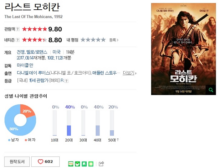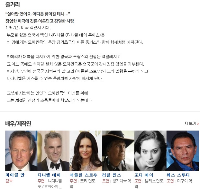 [ 라스트 모히칸 ] 1992 한글자막/