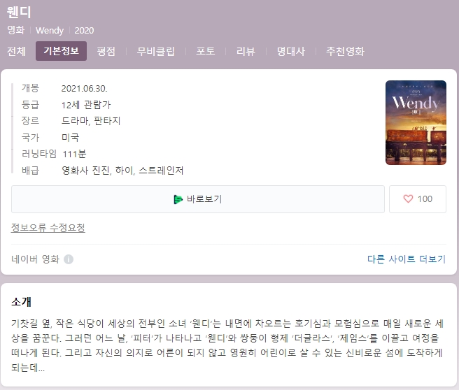 [웬디 Wendy 2020] [ 실사판 웬디 ] 2021 자체자막