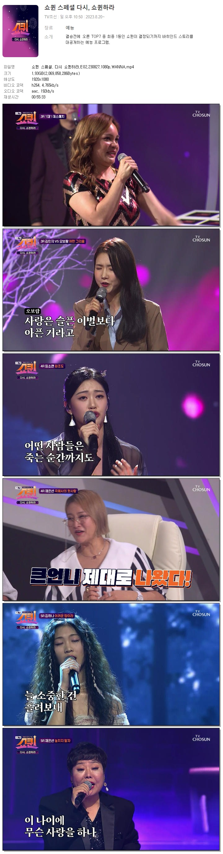 쇼퀸 스폐셜, 다시 쇼퀸하라.E02.230827.1080p.WANNA.mp4 1.9 G MP4 00:55:33 1920x1080