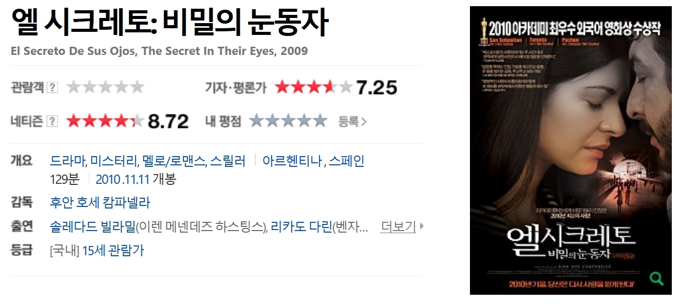【FHD】엘 시크레토; 비밀의 눈동자 - 아카데미 수상작. The.Secret.in.Their.Eyes.2009.1080p.BluRay.x264-NODLABS
