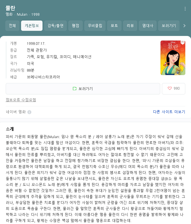 | [우리말 더빙] Mulan .I. 1998. CD1. 2Audio.avi | 700.4 M | AVI | - | 800x432 |