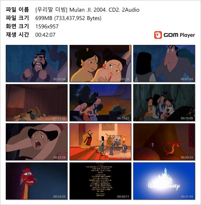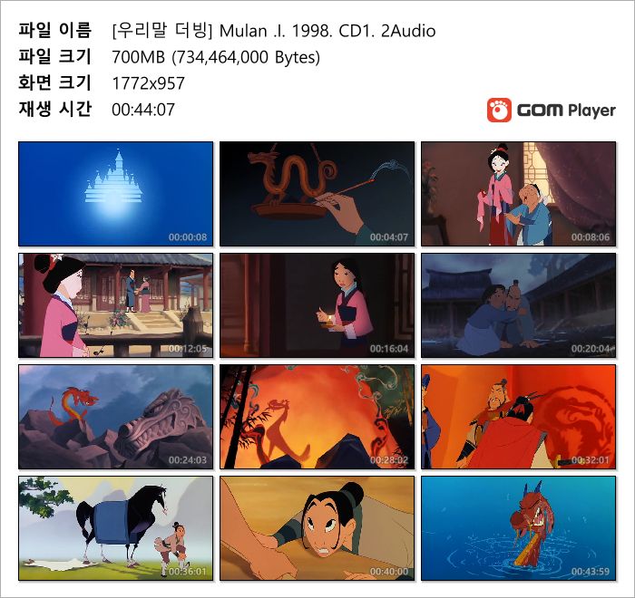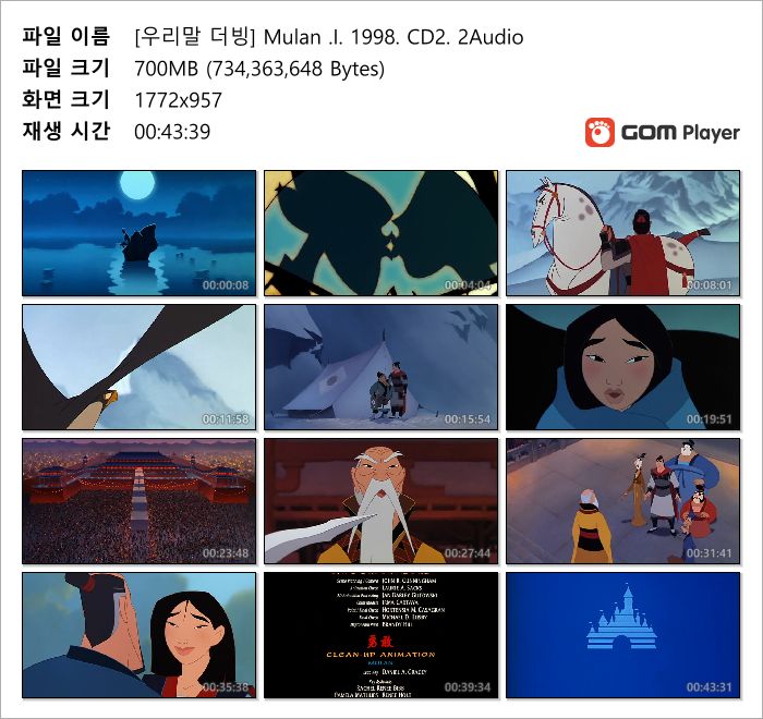 | [우리말 더빙] Mulan .I. 1998. CD2. 2Audio.avi | 700.3 M | AVI | - | 800x432 |