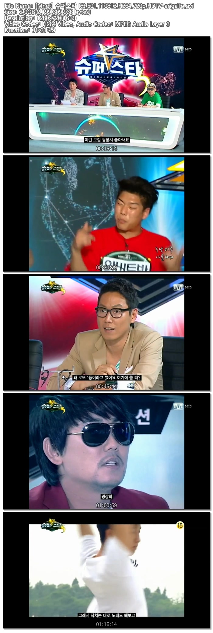 | [Mnet] 슈퍼스타 K3.E01.110812.H264.720p.HDTV-arigaTo.avi | 2 G | AVI | - | 1280x720 |