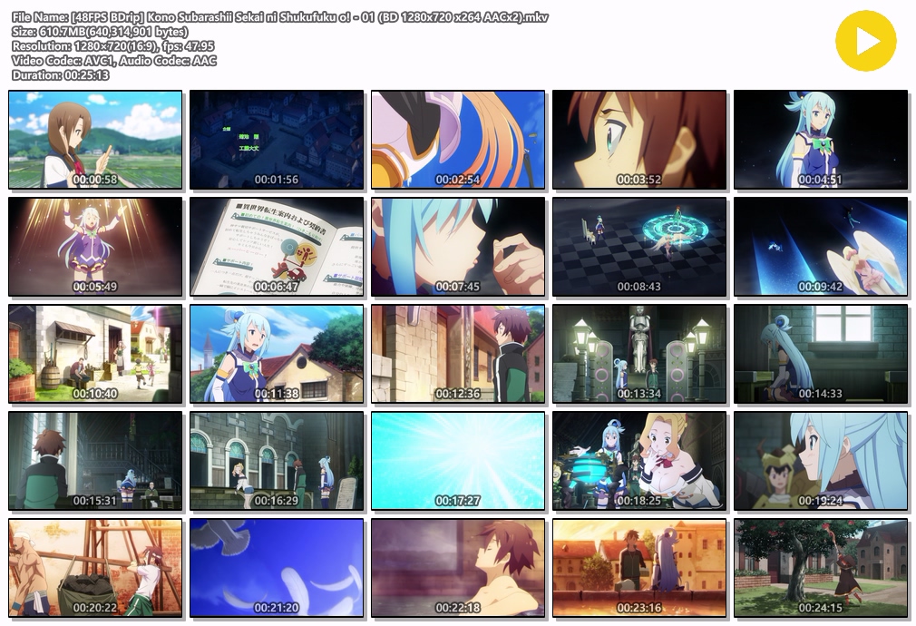 | [48FPS BDrip] Kono Subarashii Sekai ni Shukufuku o! - 01 (BD 1280x720 x264 AACx2).mp4 | 578.6 M | MP4 | 00:25:13 | 1280x720 |