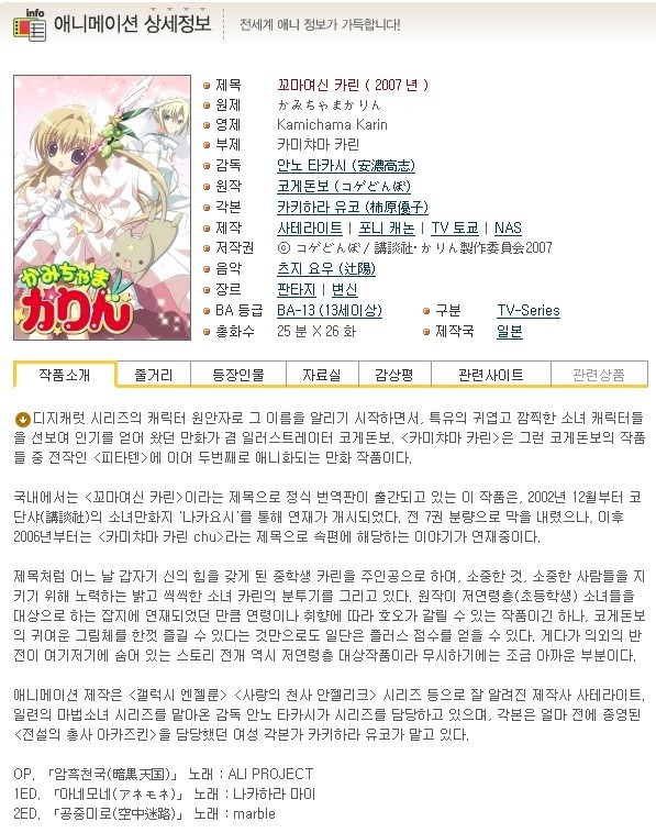 | 꼬마여신 카린 Kamichama.Karin.TV.2007 -第14話-(800x432).avi | 331 M | AVI | - | 800x432 |
