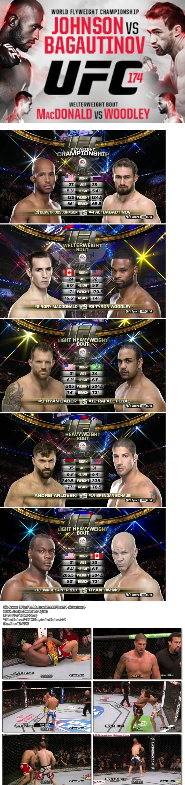 [UFC 174][영문] 존슨 vs 바가우티노프 메인 전 경기 영상 - 2014.06.15
