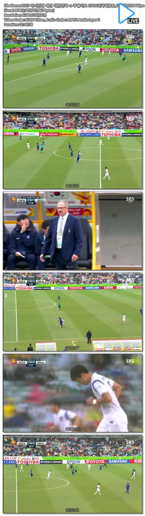 2015 아시안컵 예선 대한민국 vs 쿠웨이트 150113[국내방송,고화질,720P60fps-요셉].avi 1.9 G AVI - -