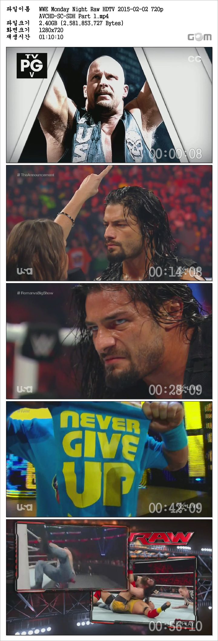 | WWE Monday Night Raw HDTV 2015-02-02 720p AVCHD-SC-SDH Part 1.mp4 | 2.4 G | MP4 | - | 1280x720 |