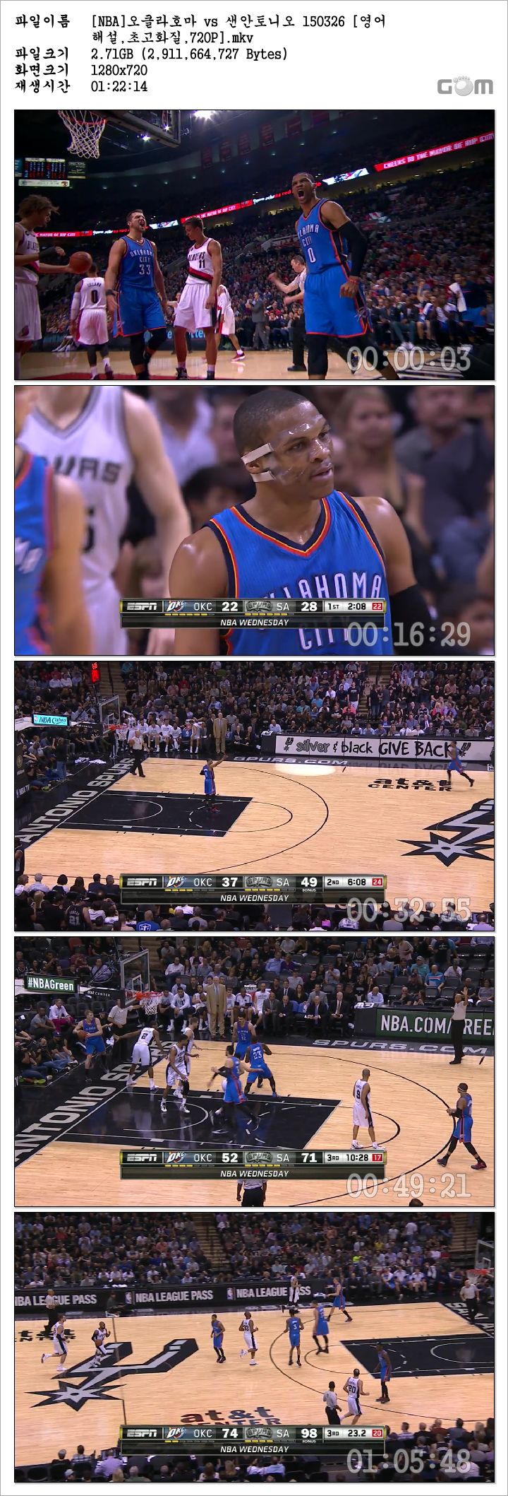 [NBA]오클라호마 vs 샌안토니오 150326 [영어해설,초고화질,720P]