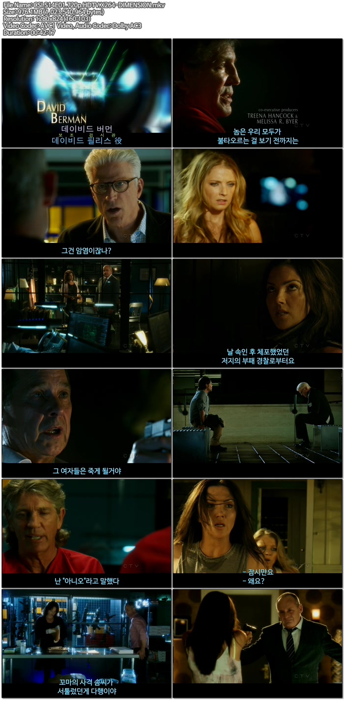 | CSI.S14E01.720p.HDTV.X264-DIMENSION.mkv | 976.1 M | MKV | - | 1280x720 |