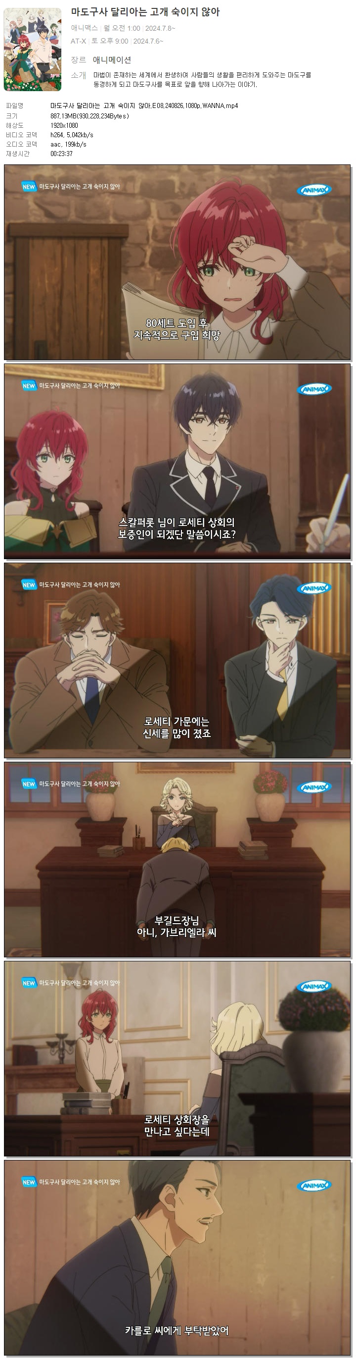 마도구사 달리아는 고개 숙이지 않아.E08.240826.1080p.WANNA.mp4 887.1 M MP4 00:23:37 1920x1080