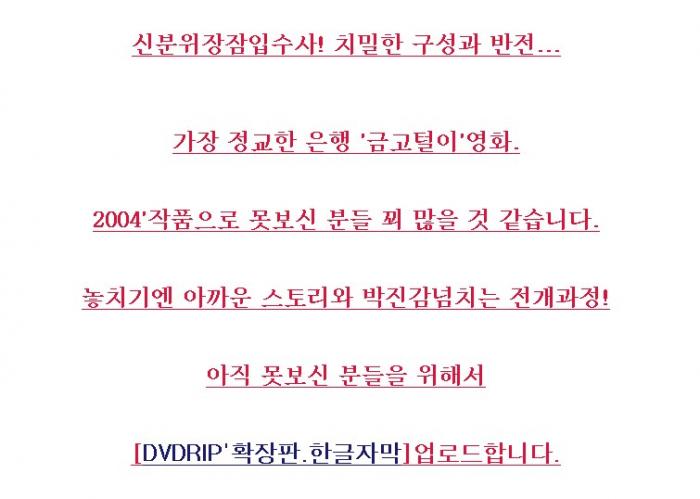 | 스윈들[Swindle, $windle]DVDRIP.CD2.avi | 701.3 M | AVI | - | - |