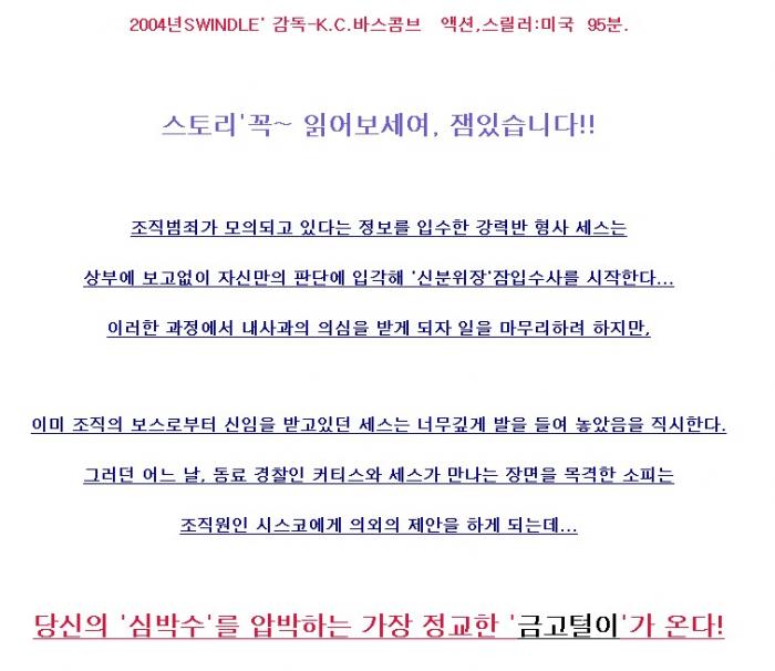 | 스윈들[Swindle, $windle]DVDRIP.CD1.avi | 701.1 M | AVI | - | - |