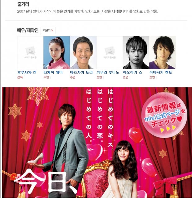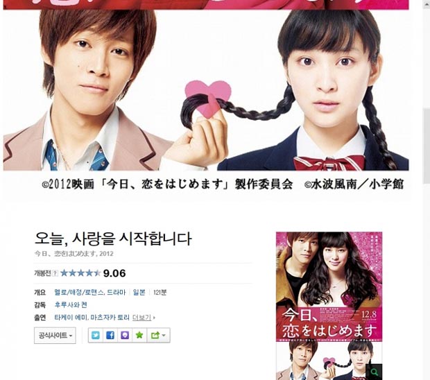 [ 오늘 사랑을 시작합니다 ] 높은 인기를 자랑한 만화를 영화로 만듬