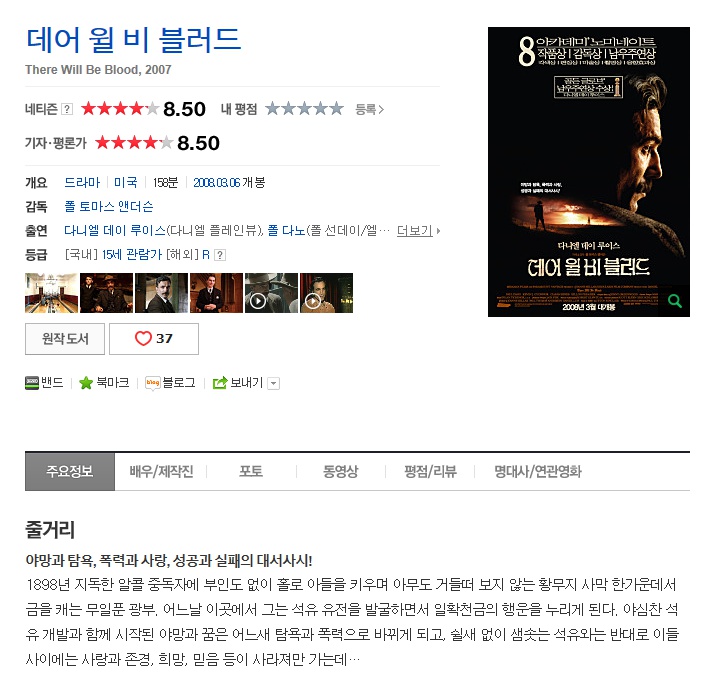 평점 8.50 [ ㄷ ㅔ어 윌 비 블러드 ] 야망과 탐욕, 폭력과 사랑, 성공과 실패의 대서사시!