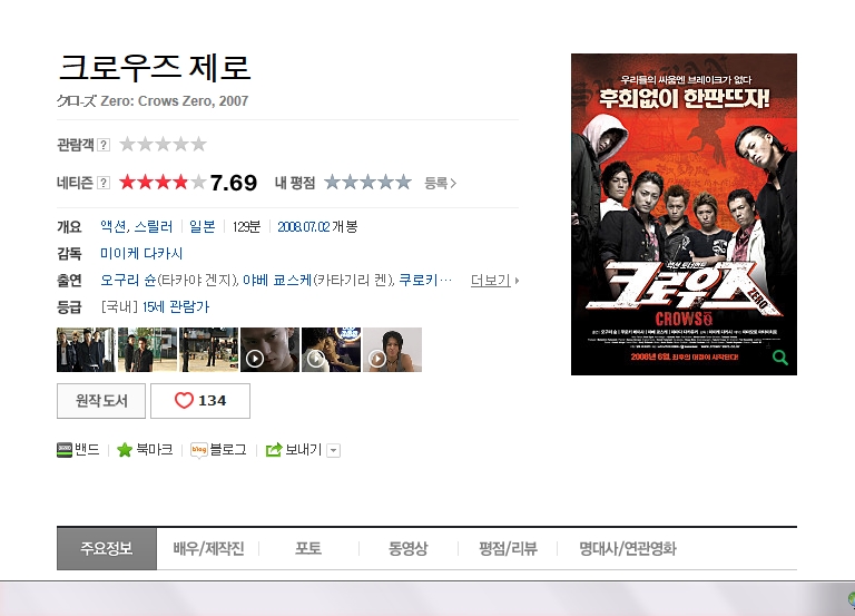 평생소장/크로우즈 제로1 HD고화질로 다시한번 보세요