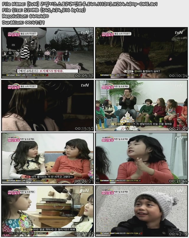 [tvN] 리얼키즈스토리레인보우.E40.111202.H264.480p-ONE.avi