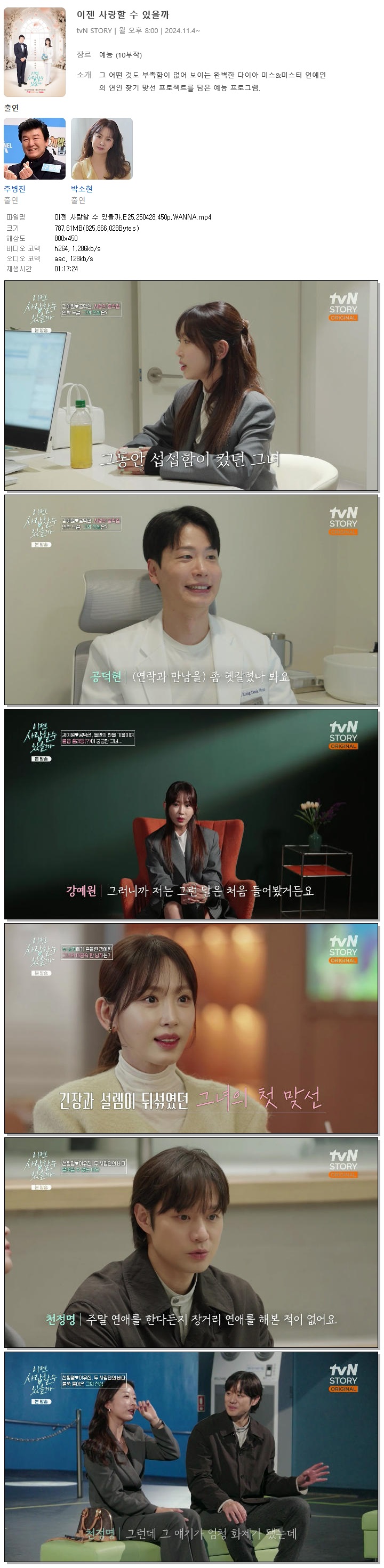 [TVN STORY] 이젠 사랑할 수 있을까.E25.250428.450p.WANNA[천정명, 강예원].mp4 787.6 M MP4 01:17:24 800x450